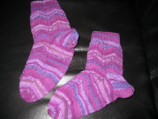 Bortsett fra å spise og spise og ... ja.... så strikkes det ;o) Disse sokkene har ligget nesten ferdig en stund, men nå er de ferdige ;) |